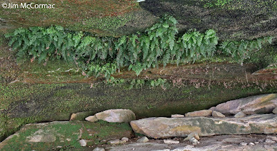 There are two Ohio sites. The other is about three miles west and ever so slightly north of the population shown in this article. These are the most northerly Trichomanes boschianum populations in the world. One of them is diligently protected, the other is just sort of hidden in an area of little interest to passersby. Saxicolous (rock-dwelling) plants often suffer greatly due to trampling and other abuses inflicted by rock climbers and others who can't resist playing on the rocks. Hopefully the two Ohio populations will be spared the excesses of man.