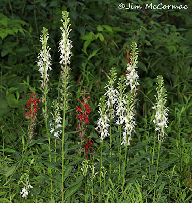 Even more interesting than the typical rich red form of Cardinal-flower is the far scarcer white-flowered type, which has been described as forma alba. I've only seen this variant in nature a handful of times, so when Dave Riepenhoff tipped me to a colony in Scioto County, Ohio, I was pleased indeed, especially as I had a trip planned to that area a few days later.